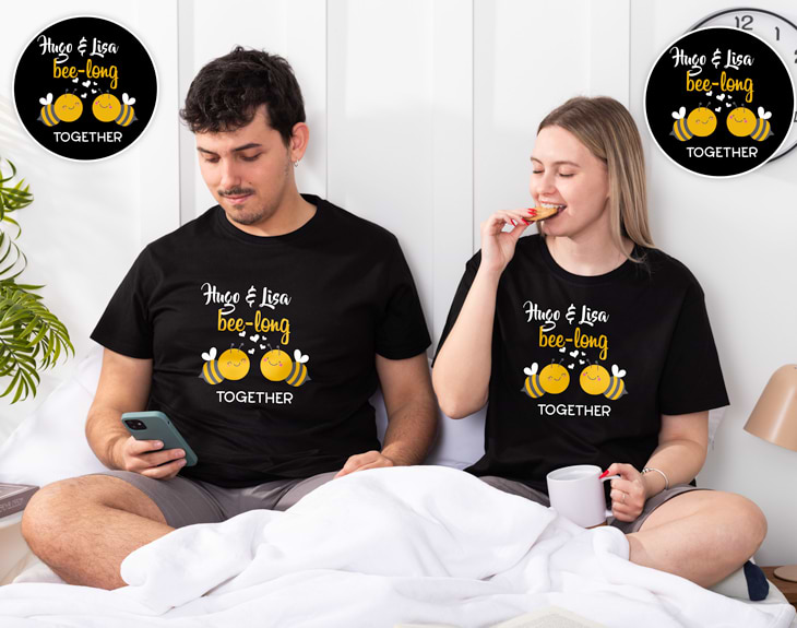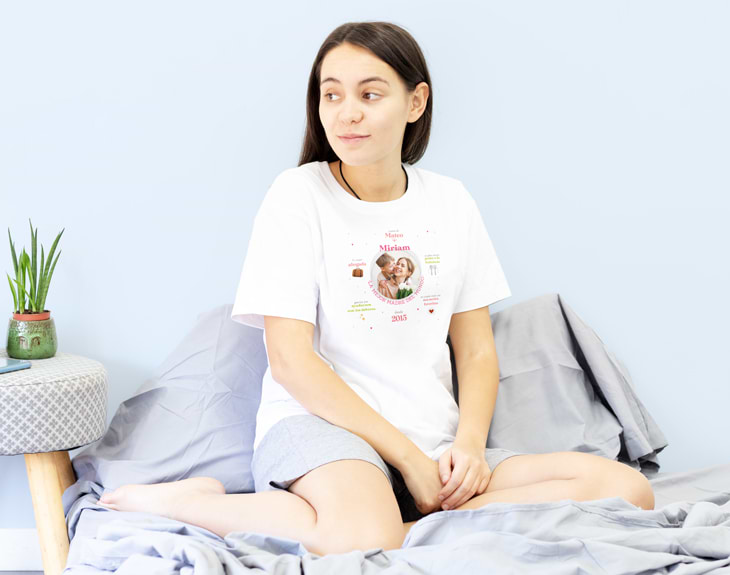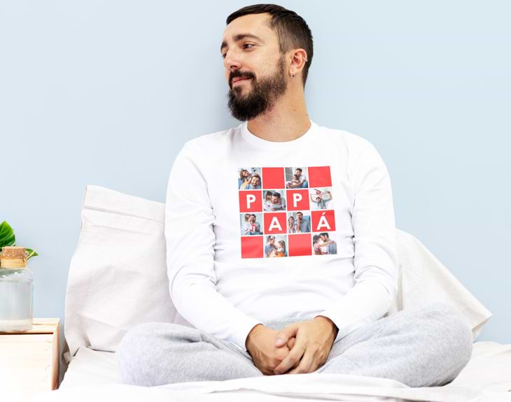 Las camisetas tienen una base de impresión de 33 cm x 33 cm, donde podrás añadir una foto, un texto, una foto con texto, o, simplemente, utilizar uno de los diseños que hemos creado y adaptarlos a la persona a la que quieres regalarle un pijama personalizado. Es un regalo original muy divertido y que dura muchísimos años, hasta que los pequeños se hagan grandes.