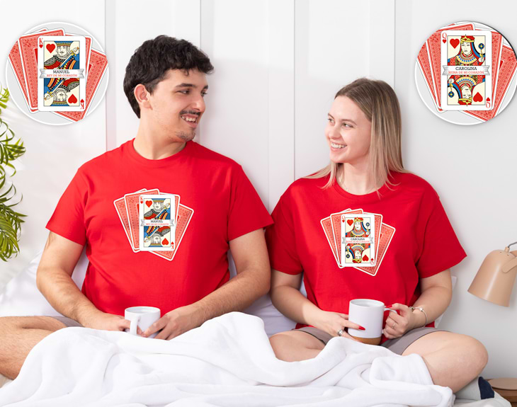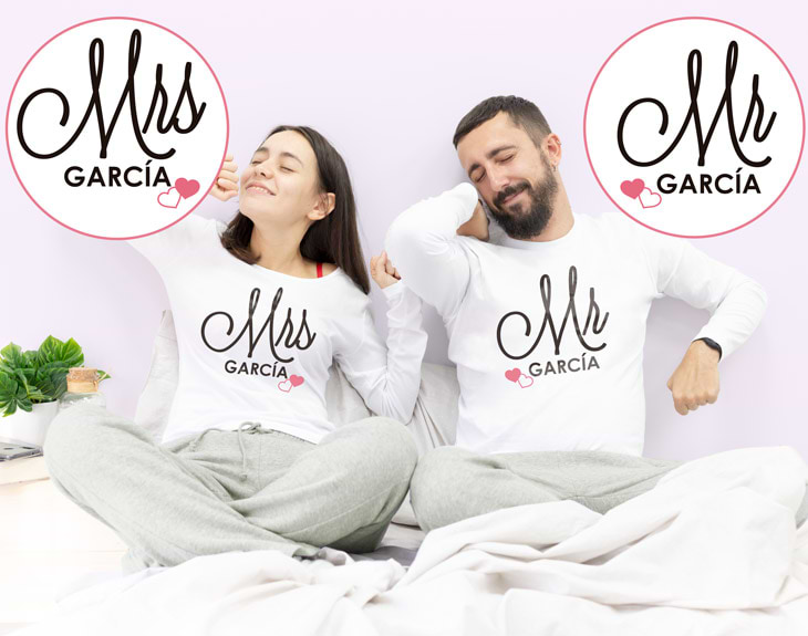 Los pijamas de invierno y de verano se personalizan de la misma manera. ¿Cómo? La personalización solo se realiza en las camisetas; los pantalones están incluidos, pero no se pueden personalizar.