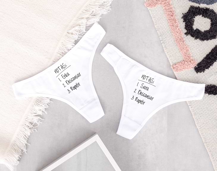 La ropa interior personalizada es magnífica para mostrar tus ideales de principio a fin. Resulta perfecta para regalar o para sorprender en el momento más inesperado, ya sea a través de fotos o mensajes. Elige entre nuestra genuina selección de calzoncillos personalizados, tangas personalizados y bragas personalizadas. Tenemos un montón de diseños esperándote, con los cuales podrás llevar a buen puerto tus ideas más peculiares. Por cierto, da igual lo que digan por ahí: ¡los calcetines también son ropa interior!