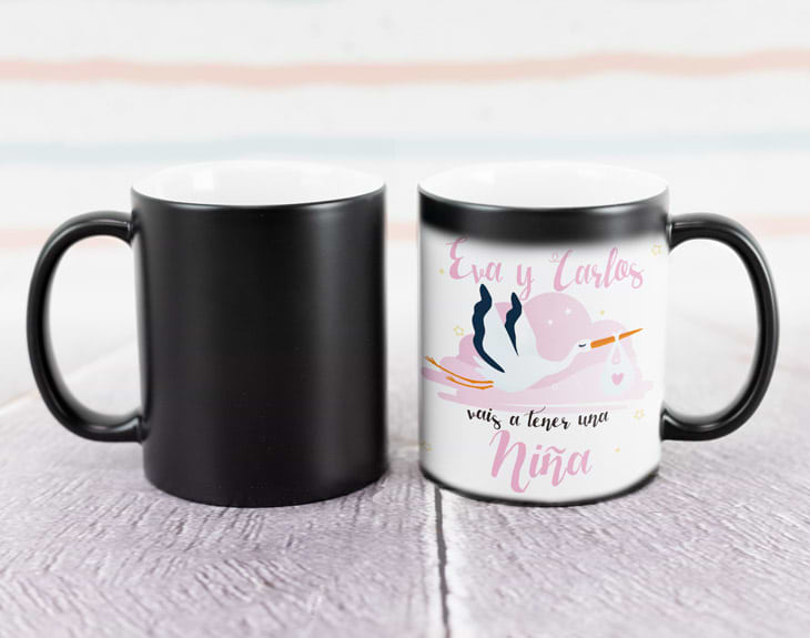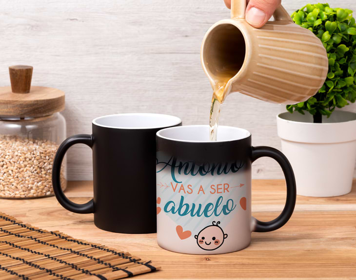 - Tazas mágicas: En un principio parece una simple taza negra, pero la cosa cambia cuando se llena de líquido caliente y comienza a aparecer vuestra fotografía por arte de magia. Se trata de nuestra taza más original e impresionante… ¡Imagínate qué cara se le quedará cuando se haga el café pensando que es una taza normal y de repente aparezca vuestra imagen!.