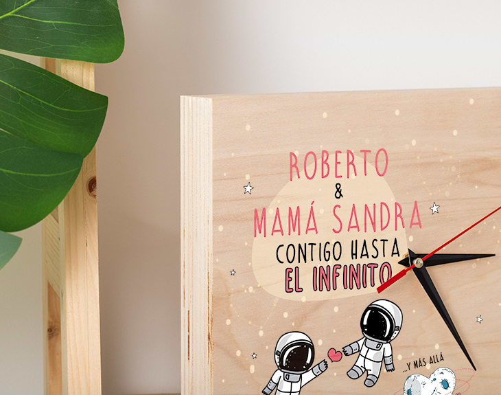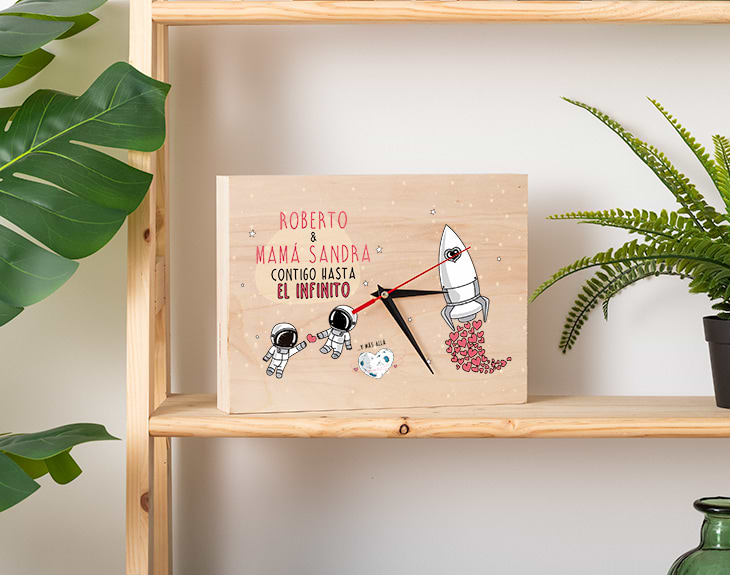 • Reloj de madera personalizado. • Tarjeta recordatoria.