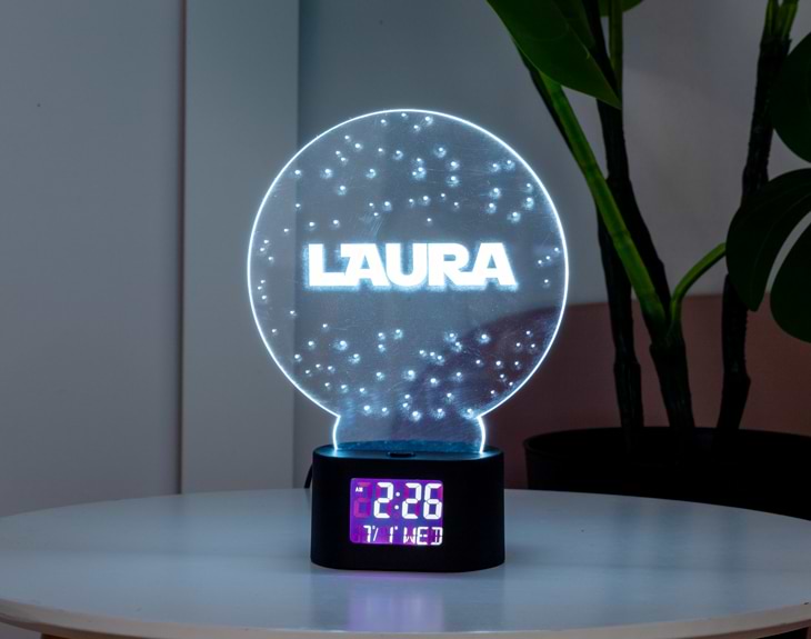 • Reloj-despertador personalizada. • Tarjeta Recordatoria.