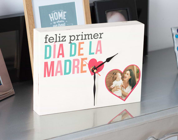Si tú también conoces a una mamá que va a celebrar el Día de la Madre por primer año, este reloj personalizado es perfecto para hacerle un precioso detalle. ¡Y es que seguro que desde que ha tenido a su bebé el tiempo pasa volando! Tienes dos opciones de compra: Medidas reloj de pared: 49,5 x 30 cm. Medidas reloj de mesa: 27 x 20 cm. Importante: Las maderas tienen vetas y estas quedan reflejadas en la imagen. Instalación: El reloj de pared cuenta con agujeros en la parte posterior, hechos a medida por si quieres colgarlo utilizando tornillos, chinchetas, o lo que creas conveniente. ¡Cabrán perfectamente en los agujeros que vienen incluidos en la madera!