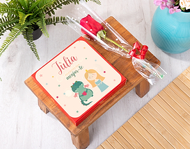 ¿Se acerca Sant Jordi y buscas sorprender a tu chica con un regalo fuera de lo común? La tradición dice que debemos regalar una rosa pero si buscas ir más allá, te proponemos optar por nuestra rosa disecada Estàs per menjar-te. Una preciosa rosa eterna con un mensaje que mezcla tradición con humor y ternura. ¡Le encantará! Lo más especial de esta rosa, a parte de que es un regalo que permanece en el tiempo, es la posibilidad de personalizar su divertido diseño con el nombre de la persona amada. Convirtiéndolo así en un regalo único y cargado de amor. Todo ello lo combinamos con un tierno dibujo en el que el dragón quiere comerse (a besos) a la princesa y tenemos el regalo redondo. A la hora de personalizar el cojín, podrás escoger también si deseas el diseño con el texto en catalán o en castellano. La rosa disecada es, por otro lado, una rosa que recibe un tratamiento desde que es cortada para prolongar su durabilidad todo el tiempo que queramos. La rosa se conserva como el primer día y nunca se nos pondrá fea, por lo que es la elección perfecta cuando queremos sorprender a nuestro amor con un regalo que recuerde para siempre. El dragón no tiene por qué ser siempre el malo de la historia ¿verdad? Al menos, nuestro dragoncito es tan tierno que nadie podrá ponerle mala cara. Esta preciosa rosa se combina con un diseño único y personalizado para crear el mejor regalo de Sant Jordi que te puedas imaginar. ¡Darás en el clavo! Medidas: 27 cm.