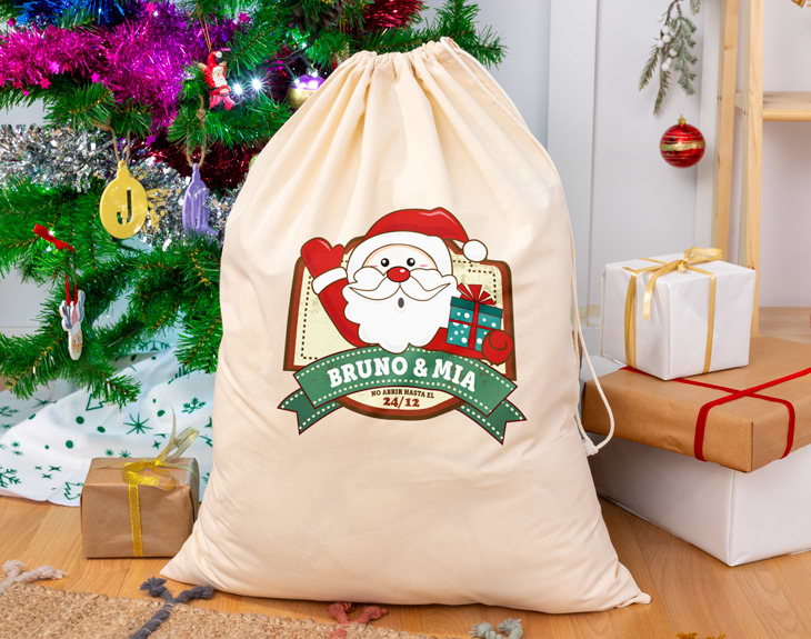 ¿Quieres que tus regalos empiecen a calentar el ambiente pero que no se abran antes de tiempo? Entonces, este saco de regalos personalizado es justo lo que Papá Noel y tú necesitáis. En él, podrás poner el nombre que tú quieras, acompañado de una ilustración que indica claramente lo que es: un saco con los mejores regalos. Disfruta de la Navidad y sorprende de la manera más especial con este bonito saco de yute. Una forma original y divertida de entregar los regalos navideños. Dimensiones aproximadas: 65 x 50 cm.