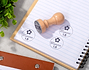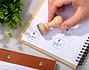 • Sello redondo de madera personalizado (no incluye tinta). • Tarjeta Recordatoria.