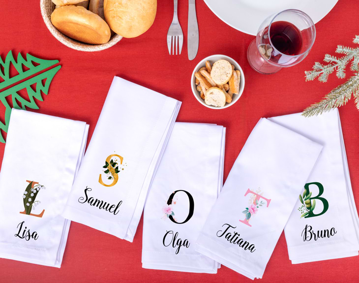 Si este año te toca a ti organizar los festines de Navidad, tenemos algo que te va a encantar. Se trata de nuestra servilleta personalizada con diseño "Letras Botánicas". Es ideal para decorar y llenar de espíritu navideño todas las comidas familiares. ¡Quedará genial! Lo más especial de esta servilleta es que es personalizable, podrás escribir el nombre que tú quieras y escoger la inicial de nuestro alfabeto de Letras botánicas. Será un detalle perfecto para sorprender a todos los familiares que acudan a las comidas. Y te preguntarás: ¿cómo personalizar esta servilleta navideña? ¡Es súper sencillo! El primer paso a seguir consiste en añadir el producto al carrito y entrar al área de personalización. Una vez ahí, ya puedes escribir el nombre que tú quieras y escoger la inicial de nuestro alfabeto. Pronto estará perfecta y lista para regalar. ¡Será un original regalo para Navidad! Medidas: 49,5 x 50,5 cm. Material: Tela.