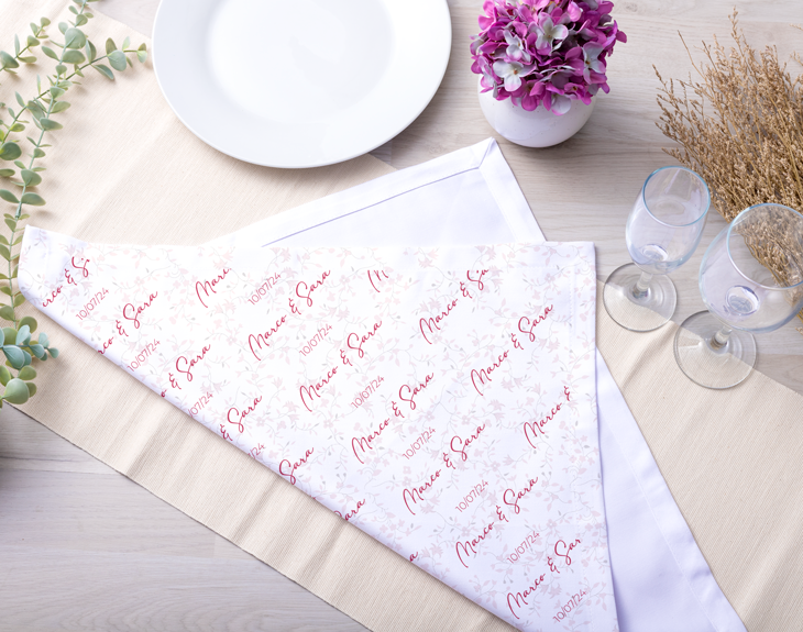 En una boda siempre hay mucho que preparar y organizar para que todo salga bien. Por eso, algo que no puede faltar en esta ceremonia son nuestras servilletas personalizadas con diseño "Natural". Le darán un toque mucho más especial y personal a la mesa del banquete. Lo mejor que es que son personalizables, podrás escribir los nombres de los protagonistas de este día tan bonito junto con la fecha. ¡Quedará genial! Sin duda, será un día inolvidable para los novios y para todos los invitados. ¡Porque el amor entre dos personas es lo más bonito que existe! Personalizar esta servilleta es súper sencillo. El primer paso a seguir consiste en añadir el producto al carrito y entrar al área de personalización. Una vez ahí, ya puedes escribir los nombres de los novios y nosotros nos encargamos de todo lo demás. Pronto estarán perfecta y listan para regalar. ¡Será un original regalo para bodas! Medidas: 49,5 x 50,5 cm. Material: Tela.