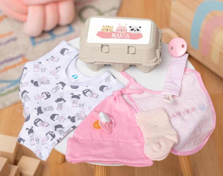 ¿Quieres sorprender a esa pareja que acaba de ser papis de una preciosa niña? Hazlo con esta huevera personalizada llena de pequeños detallitos para la recién nacida. Porque la llegada de un bebé a la familia es toda una alegría y no hay nada como regalarle un montón de cositas para que las estrene en sus primeros meses de vida. ¡A sus padres les encantará! Seguro que nunca habías pensado regalar algo dentro de una huevera, pero es un regalo de lo más original y divertido. Además de su diseño en la parte superior de la huevera, este kit incluye un montón de cosas para la bebé: un chupete, un sujeta chupetes, un gorrito, una camiseta de tirantes, unos calcetines y un babero. ¡Todo de color rosa! Pero para hacer de este regalo algo único y muy emotivo, no te olvides de personalizar la huevera. Añade el producto al carrito y entra en el área de personalización. Completa el adorable diseño de animalitos con el nombre de la pequeña y nosotros nos encargamos del resto. ¡Será el regalo más bonito del mundo! Medida: 18 cm x 12 cm. Talla: 0-3 meses.