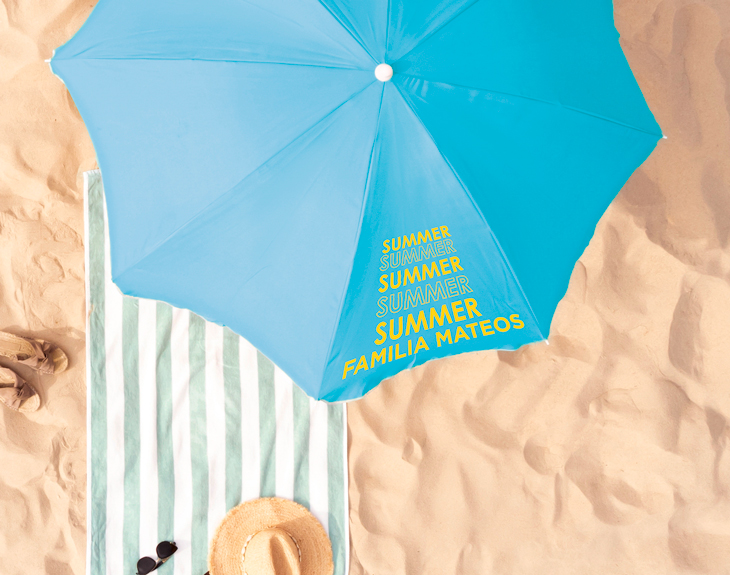 ¡El verano ya está aquí! ¿Y tú ya estás preparado/a? Si todavía no tienes nuestra sombrilla personalizada con diseño "Summer summer", no esperes más y hazte con ella. ¡Es el accesorio que no te puede faltar este verano! Es genial para protegernos de el sol y no achicharrarnos en la playa. Sin duda, el verano es la mejor época del año, hace calorcito y estamos de vacaciones. Es el momento de hacer esos planes que durante el invierno no podemos hacer, como... ¡Ir a la playa o a la piscina! Y para eso, nuestra sombrilla de color azul es perfecta. Además, es personalizable, podrás escribir el nombre que tú quieras. ¡Quedará genial! Personalizar esta sombrilla es muy sencillo. El primer paso a seguir consiste en añadir el producto al carrito y entrar al área de personalización. Una vez ahí, ya puedes escribir el nombre que tú quieras. Pronto estará perfecta y lista para llevar a la playa. ¡Será un original regalo para verano! Incluye una funda para guardar la sombrilla. Material: poliéster 190T Medidas: 160 cm.