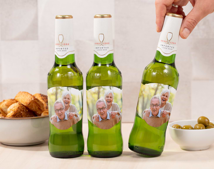 Todo buen amante de la cerveza ha disfrutado alguna vez de la mítica Stella Artois, la cuarta cerveza más vendida del mundo. Ahora puedes probarla de una manera muy especial: ¡con la etiqueta personalizada! Dinos qué quieres en la cerveza (una foto, una frase, una fecha...) y nos encargaremos de transformar tu idea en realidad. Tendrás así un regalo para cerveceros realmente perfecto. La Stella Artois fue creada en el año 1366 en Lovaina, una pequeña ciudad de Bélgica. Aunque se elaboró como un producto navideño, gustó tanto que rápidamente se empezó a preparar todo el año. Hoy en día se vende en casi 100 países distintos, siendo la premium lager belga más vendida del mundo (y la cuarta entre todas las cervezas). Una European Pale Lager equilibrada, agradable y muy refrescante que ahora puedes regalar con la etiqueta personalizada. Podrás elegir si quieres personalizar las seis cervezas con el mismo diseño para todos o con un diseño diferente para cada una de ellas.