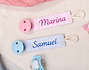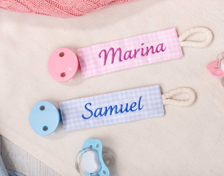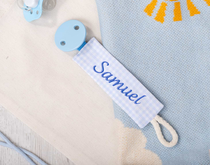 ¿Te gusta cuidar el aspecto de tu bebé? Este sujeta chupetes personalizado te ayudará a vestir elegante a tu niño, gracias al diseño. El pequeño dejará de pedirte el chupete todo el tiempo. A partir de ahora, lo tendrá sujeto a este regalo original y jugará con él siempre que quiera. El sujeta chupetes lleva consigo el nombre del niño o niña grabado, con el fin de que puedas disfrutar de un producto totalmente personalizado. Además, puedes elegir entre el color azul o el rosa.