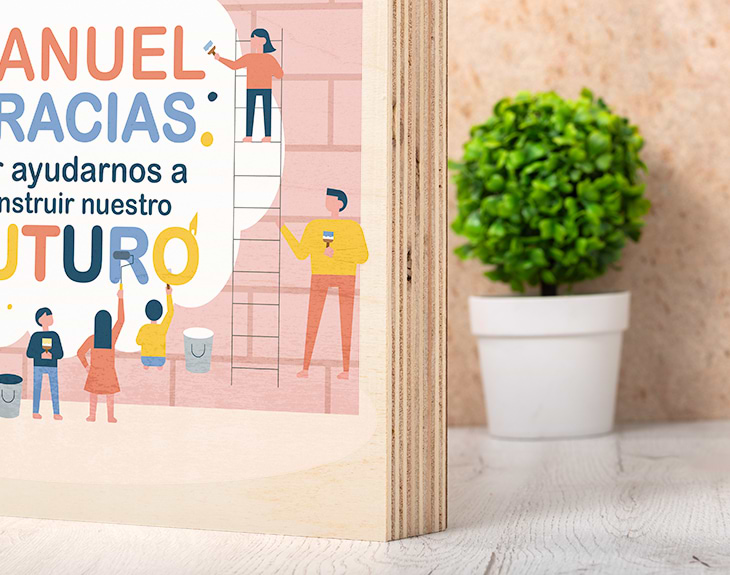 • Tabla de madera 27 x 27 cm. • Tarjeta recordatoria.