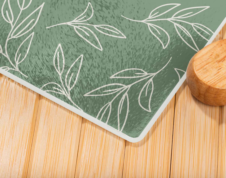 ¿Eres un amante de la cocina? Si te encanta concinar y siempre te curras un montón todos los platos, tenemos algo que no te puede faltar. Se trata de nuestra tabla de cortar con diseño "Nature", es ideal. Viene de maravilla para cortar las verduras, carne, fruta... cualquier ingrediente que se vaya a cocinar. Tiene un diseño muy original llenito de hojitas muy bonitas. Sin duda, esta tabla de vidrio se puede convertir en un regalo muy original para ese cocinitas tan especial, es perfecto para su cumpleaños, un amigo invisible o para cualquier ocasión especial. Pero lo mejor de todo es que es personalizable. ¡Podrás escribir el nombre que tú quieras! Personalizar esta tabla de cortar es súper sencillo. El primer paso a seguir consiste en añadir el producto al carrito y entrar al área de personalización. Una vez ahí, ya puedes escribir el nombre que tú quieras y nosotros nos encargamos de plasmarlo en la tabla. Pronto estará perfecta y lista para regalar. ¡Un original regalo para cocineros! Dimensiones de corte: 22 cm x 19 cm. Dimensiones del mango: 13 cm. Material: vidrio.