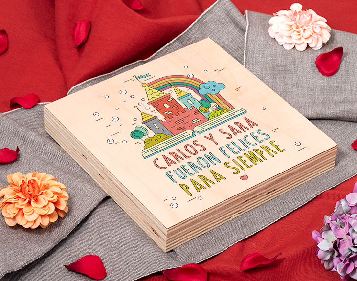 ¿Podrías definir tu relación como un amor de cuento? Esta tabla de madera personalizada es perfecta para sorprender a la mejor pareja del mundo. Se trata de un regalo original perfecto para disfrutar de un amor verdadero para toda la vida. Solo necesitamos los nombres para personalizar la tabla y después... ¡Podrás disfrutar de un momento mágico y súper romántico! Importante: Las maderas tienen vetas y estas quedan reflejadas en la imagen.