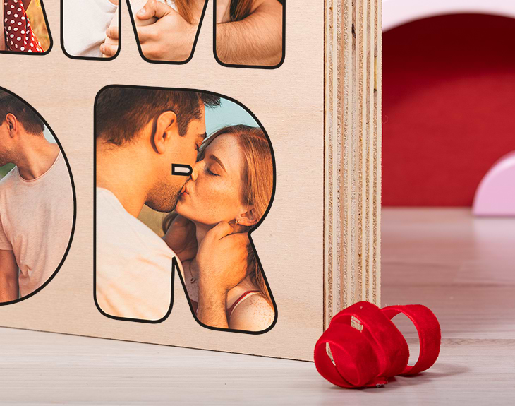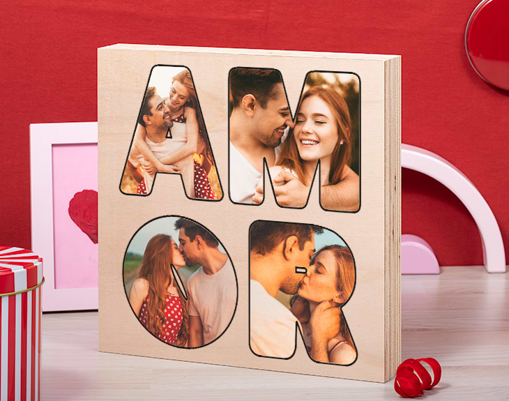 Grabar el amor que sientes por esa persona en una madera como esta es una de las cosas más bonitas que puedes hacer en San Valentín. Nuestra tabla de madera personalizada es perfecta para grabar toda tu historia con tu pareja en una de las palabras más románticas: AMOR. Personaliza cada letra con una foto vuestra, y descubre lo mucho que os queréis los dos. Es un regalo romántico perfecto para sacar una bellísima sonrisa a la persona con la que compartes tu día a día. Medidas de la tabla: 27 cm x 27 cm.