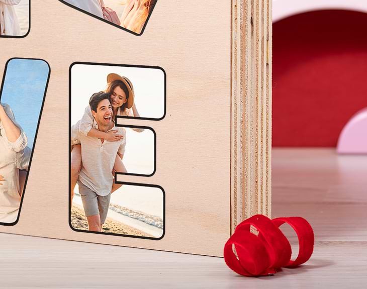 La tabla de madera personalizada perfecta para parejas en San Valentín. Es un regalo romántico para sacarle una sonrisa a tu pareja y decorar vuestro nuevo salón o habitación con la historia de amor de vuestra vida. Personaliza con cuatro fotos cada letra de la palabra LOVE. ¡Deja la foto más romántica para el corazón! Medidas de la tabla: 27 cm x 27 cm.