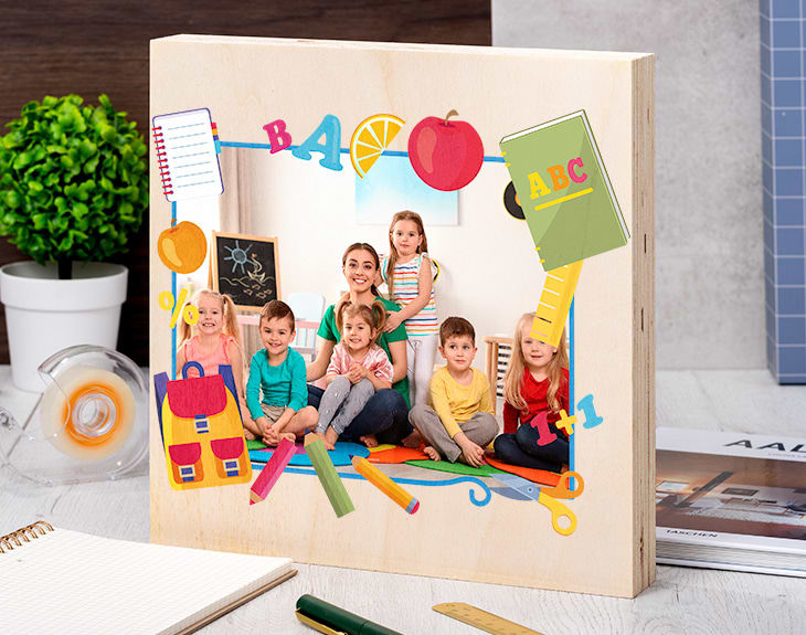Si este año habéis tenido al mejor o la mejor profe del mundo, que mejor forma de agradecérselo que con esta tabla de madera personalizada. Aprovechad el final de curso para darle una sorpresa a vuestro o vuestra profe. Solo tendréis que escoger una foto de toda la clase y nosotros la insertaremos en este diseño tan chulo. Podéis elegir la foto de la orla o de la última excursión. Seguro que a vuestro o vuestra profe le hace mucha ilusión que sus alumnos se acuerden le hagan un regalo tan guay como este y lo pondrá en su sitio preferido de la clase. ¿No os parece una idea genial?