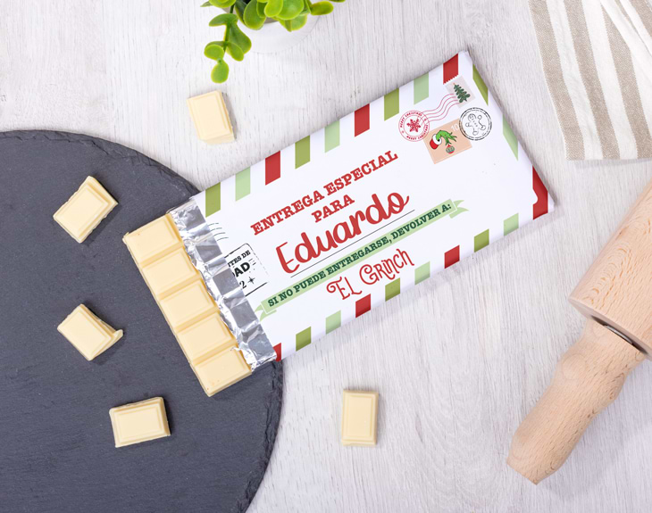 ¡La Navidad ya está aquí! Es el momento de juntarse con todos nuestros seres queridos y comer un montón de dulces. Seguro que tú también conoces a esa persona que adora el chocolate, por eso, si quieres sorprenderla en esta fechas tan especiales, nuestra tableta de chocolate personalizada con diseño "Entrega especial" es perfecta. Lo mejor de esta tableta es que es personalizable, podrás escribir el nombre que tú quieras. ¡Quedará genial! Además, puedes elegir entre tres tipos de chocolate: blanco, con leche o negro. ¡Elige tu favorito! Sin duda, se convertirá en el regalo perfecto para cualquier ocasión, endulza a cualquiera. Personalizar esta tableta de chocolate es súper sencillo. El primer paso a seguir consiste en añadir el producto al carrito y entrar al área de personalización. Una vez ahí, ya puedes escribir el nombre que tú quieras. Pronto estará perfecto y listo para regalar. ¡Será un original regalo para Navidad!