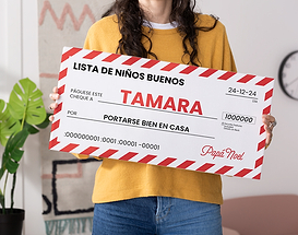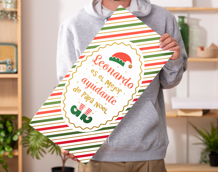 Sabemos que Papá Noel no podría cumplir todos sus cometidos navideños sin la gran ayuda de sus elfos. Lo mismo pasa en la familia: para que la noche sea mágica todos colaboramos con la comida, la decoración, los regalos, el brindis. Por eso, si quieres premiar a esa persona que más ayuda cada año con los preparativos navideños, te traemos nuestra tableta gigante personalizada con diseño "Elfo ayudante". ¡Un original regalo para endulzar la Nochebuena de una manera especial! Lo mejor de todo esto es que es personalizable, podrás escribir el nombre que tú quieras en ella. Esta súper tableta navideña está formada por una caja de cartón de 58 x 28 centímetros y el relleno que más os guste y que podéis elegir más adelante. Milka, Kit Kat, Valor, Jungly, Lindt, Kinder… ¡Hay para todos los gustos! Personalizar esta tableta gigante es súper sencillo. El primer paso a seguir consiste en añadir el producto al carrito y entrar al área de personalización. Una vez ahí, escoges el relleno que quieras y ya puedes escribir lo que quieras y escoger tu foto favorita. Pronto quedará perfecta y lista para regalar. ¡Será un regalo muy especial para endulzar estas fiestas! Medidas de la tableta gigante: 58 x 28 centímetros. Elige una opción de relleno: • 28 barritas de Huesitos. • 6 tabletas de Jungly. • 9 tabletas de Nestlé Dolca. • 9 tabletas de Milka (surtido): chocolate, chocolate blanco, Chips Ahoy y Oreo. • 9 paquetes de Kinder. • 15 paquetes de Kit Kat. • 5 tabletas de Valor (surtido) • 9 tabletas de chocolates Lindt (surtido): Figue Intense, Limón, Miel y Almendras, Caramel, Mango y Almond, Chili, Sésamo y Strawberry Intense.