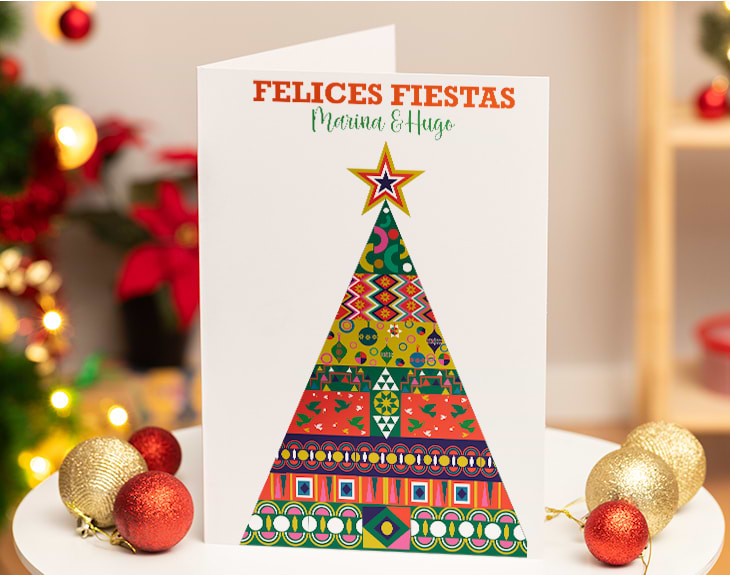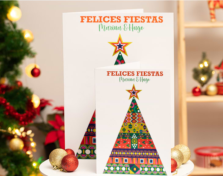 Uno de los grandes detalles de la Navidad es ver las calles adornadas con luces y los árboles bien cargados de decoración. Seguro que te encanta pasear y hacer fotos al árbol iluminado. Y es que si algo caracteriza a esta fecha tan especial es que tiene un montón de colores y todos son muy característicos: verde, rojo, amarillo... Si buscas la manera más chula de felicitar la Navidad esta tarjeta de felicitación es el detalle ideal. Una tarjeta de felicitación siempre es un bonito gesto, pero con esta tarjeta sorprenderás aún más: tiene un original diseño de árbol de Navidad multicolor con el que sorprenderás seguro, y felicitarás de la manera más original. Nuestras tarjetas son lo más: vienen en tamaño doble A4 y en tamaño gigante, ambas son geniales y seguro que las conservan para toda la vida. Si quieres conseguir una con este diseño tan chulo simplemente tendrás que añadir el producto a tu carrito y personalizarlo, desde ahí podrás poner el nombre que quieras para hacer el detalle aún más personalizado. Destaca con este regalo original y deja a esa persona especial con la boca abierta. Medidas (tarjeta abierta): Tarjeta gigante: 66 x 44 cm. Tarjeta A4: 42 x 29'50 cm.