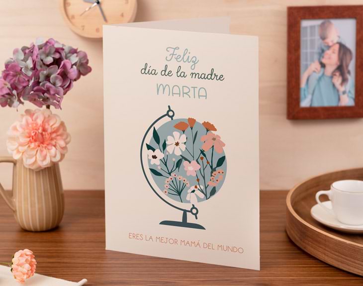 El mundo está completamente lleno de flores preciosas, pero ninguna de ellas se puede comparar con la persona más bonita que tienes en tu vida: tu madre. Esta tarjeta gigante personalizada está pensada para hacer que el Día de la Madre sea todavía más único. ¡Podrás escribir la dedicatoria que quieras en su interior! ¿Qué mejor forma de homenajear a la mejor madre que puede existir que con una tarjeta gigante para mamá como esta? ¡Cuenta con un diseño repleto de color! Toda la familia podréis sorprenderla con este producto que cuenta con dos tamaños: gigante, con unas medidas de 66 centímetros de largo por 44 centímetros de alto; y A4, con unas medidas de 42 centímetros de largo y 29,5 de alto. ¿Cómo podrás personalizar un regalo original como este para vuestra madre? Primero tendréis que elegir el tamaño y si quieres que cuente con el interior de la tarjeta personalizado. Tras esto podréis entrar en el área de personalización, donde encontraréis los diseños de para cada una de las partes de la tarjeta (exterior e interior). ¡Solo tendréis que clicar sobre cada cuadro de texto para diseñarla a vuestra manera! ¿Cómo se graba el mensaje? ¡Es muy fácil! Añade la tarjeta al carrito y dale al botón de "personalizar". Podrás grabar un mensaje en ese momento (con el micro del móvil o del ordenador) que nosotros nos encargaremos de incluir la tarjeta. ¡El único límite es tu imaginación! Medidas (tarjeta abierta): Tarjeta gigante: 66 x 44 cm. Tarjeta A4: 42 x 29'50 cm. Importante: a la hora de escribir el texto en el interior de la tarjeta, necesitarás darle al botón "ENTER" para crear diferentes párrafos. En el caso de escribirlo todo seguido, el texto irá todo en una línea, y el diseño saldrá tal y como le llegue a nuestro equipo de personalización.
