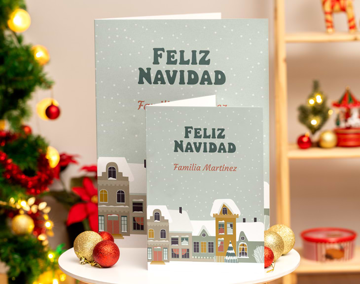 Se acerca la Navidad: una época llena de regalos, cariño y felicitaciones. Entre tantas personas queridas a veces se nos acaban las ideas para felicitar y/o regalar, pero nuestra tarjeta de felicitación personalizada es el detalle perfecto para iluminar la cara de esa persona que tanto quieres en estas fechas tan especiales. Una tarjeta es el detalle perfecto que dar: puedes elegir el diseño y escribir palabras que salgan de tu corazón, ¡no hay nada más personal y bonito que eso! Con este diseño tan chulo podrás escribir lo que quieras en su bonito interior personalizado si eliges esa opción. Será tarea tuya diseñar una tarjeta de lo más chula y que ilusione a quién se la vayas a regalar, ¡nadie la conoce mejor que tú! Conseguirla es muy fácil: podrás elegir el tamaño de la tarjeta: Gigante o A4. Las tarjetas gigantes impresionan un montón, pero las A4 también son una monada, elegir si quieres fondo en blanco para escribir tú a mano o personalizado. A partir de ahí podrás personalizar la tarjeta con lo que quieras y ver como te queda antes de finalizar el proceso. ¡Seguro que te encanta esta experiencia! Medidas (tarjeta abierta): Tarjeta gigante: 66 x 44 cm. Tarjeta A4: 42 x 29'50 cm.