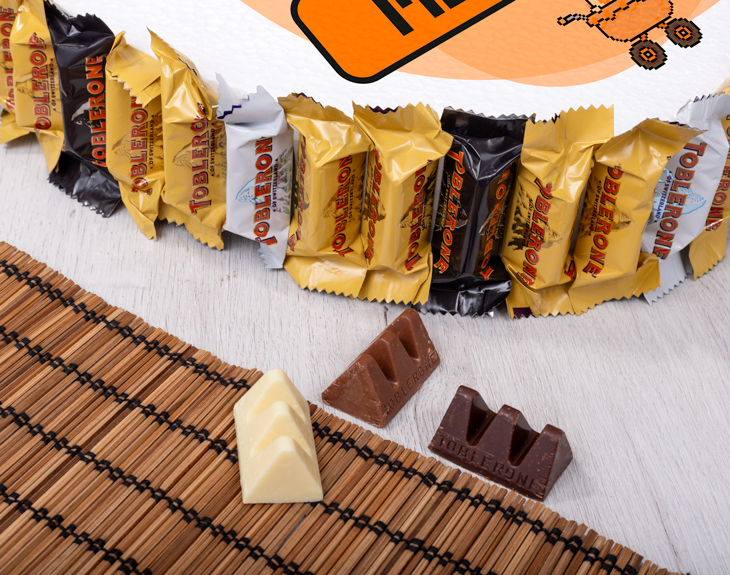 • Tarta de poliespán personalizada en forma de corazón con chocolatinas. • Tarjeta Recordatoria.