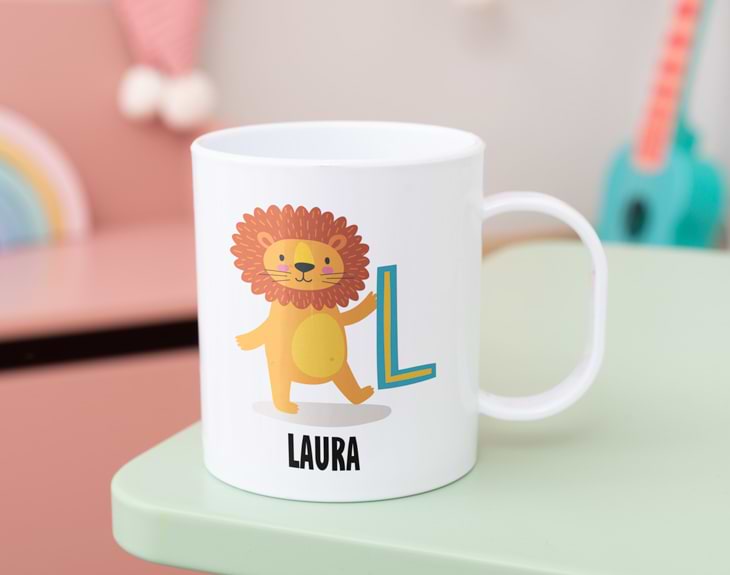 La mejor taza personalizada para llevar al cole, pues en ella podrás poner el nombre de tu hijo o hija acompañado de un animalito con su inicial. Tigres, leones: todos quieren ser los campeones. Como está pensada para la vuelta al cole, de los campamentos y de las excursiones, es una taza de plástico irrompible. Al estar personalizada de una manera tan característica, te asegurarás de que tu hijo o hija beba siempre en unas óptimas condiciones de higiene. Puedes elegir entre todas las letras y, dentro de ellas, entre diferentes animales. Importante: El plástico de la taza no contiene BPA. Importante: La disposición de los personajes será realizada por nuestros diseñadores gráficos, adaptando el número de personajes lo mejor posible para conseguir un resultado óptimo. Esta taza es apta para lavavajillas y microondas.