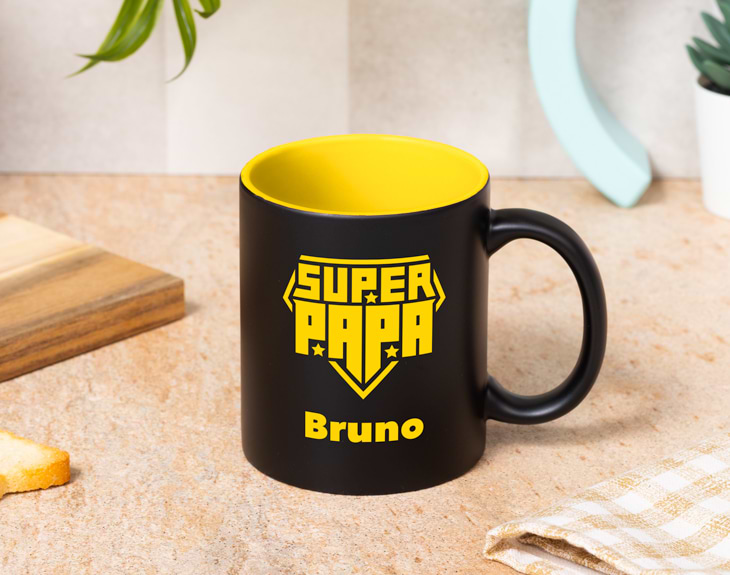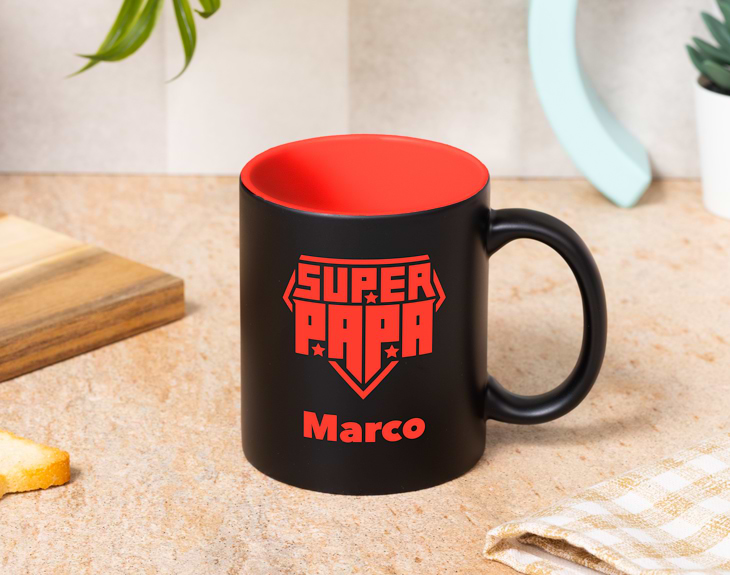 ¡El héroe de todos los días se llama PAPÁ! Y como tal, merece un regalo que esté a su altura. Esta taza personalizada con su nombre es el detalle perfecto. Aprovecha este Día del Padre para sorprenderlo con un regalo original que hará que cada mañana, al prepararse su café caliente, recuerde lo especial que es para ti. Esta taza bicolor está disponible en varios colores para que puedas escoger el que más se adapte a tu papá. Además, puedes personalizar el asa de la taza, añadiendo su nombre o un mensaje especial. ¡Será un detalle único que quedará súper chulo! Perfecto para dar una gran sorpresa este Día del Padre. Personalizarla es muy fácil. Solo añade la taza al carrito, entra al área de personalización, selecciona el color y escribe el nombre o mensaje que desees. Nosotros nos encargaremos de que la taza más original llegue justo a tiempo para ese Superpapá.