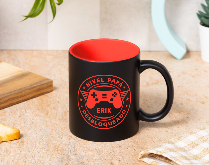¡Regalarle a papá una taza bicolor personalizada este Día del Padre será un acierto total! Imagina la ilusión de verlo recibir un regalo tan personal, con su nombre y un diseño tan especial como el de "Nivel Papá Desbloqueado". Cada vez que se sirva un café calentito por la mañana, se acordará del cariño de su familia. Y es que, su vida cambió para siempre el día que se convirtió en papá. Esta original taza es el regalo perfecto porque tiene algo único: ¡es personalizable! Podrás añadir el nombre de papá, convirtiéndola en la taza más especial de todas. ¡Seguro que se convierte en su fiel compañera de cada mañana! Personalizarla es muy fácil. Solo añade el producto al carrito y entra al área de personalización. Elige el color para el interior de la taza y completa el diseño con su nombre. ¡El resultado será un regalo original para padres que hará que su día sea aún más especial! Colores disponibles: rojo, naranja, rosa, verde y amarillo.