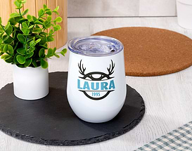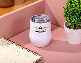 • Vaso térmico blanco personalizado. • Tarjeta recordatoria.