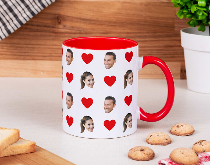 El amor es algo único que todos necesitamos en nuestra vida. El tener a una persona a la que quieres de manera incondicional y con la que compartes toda tu vida es algo precioso y único, algo que hay que celebrar. ¿Y qué mejor día que San Valentín para festejar vuestra relación? ¡No se nos ocurre una fecha mejor! Y es que seguro que habéis vivido momentos únicos, instantes que se han quedado en vuestra memoria para siempre. Es una persona súper especial para ti, y seguro que quieres verla en todos y cada uno de los momentos de tu vida. Por eso tenemos para ti esta taza personalizada. ¡Vuestras caras aparecerán junto a un montón de corazones! Esta taza con foto de cara será el regalo perfecto para empezar el día con toda la energía del mundo. Podrás personalizar este regalo original con una foto de esa persona que tanto amas y con la que quieres compartir tu día a día. Escoge vuestra mejor foto y recorta las caras. ¡Nosotros nos ocuparemos de crear una taza única para tu amorcito! Al comprar este diseño podrás elegir el tipo de taza que quieres entre nuestras seis opciones disponibles en el desplegable: cerámica, mágica, plástico, con el interior en color, con cuchara o con asa en forma de corazón. En el lado derecho encontrarás la guía de tazas con las características de cada una de ellas. ¡Escoge el estilo y la cantidad de tazas que quieras!