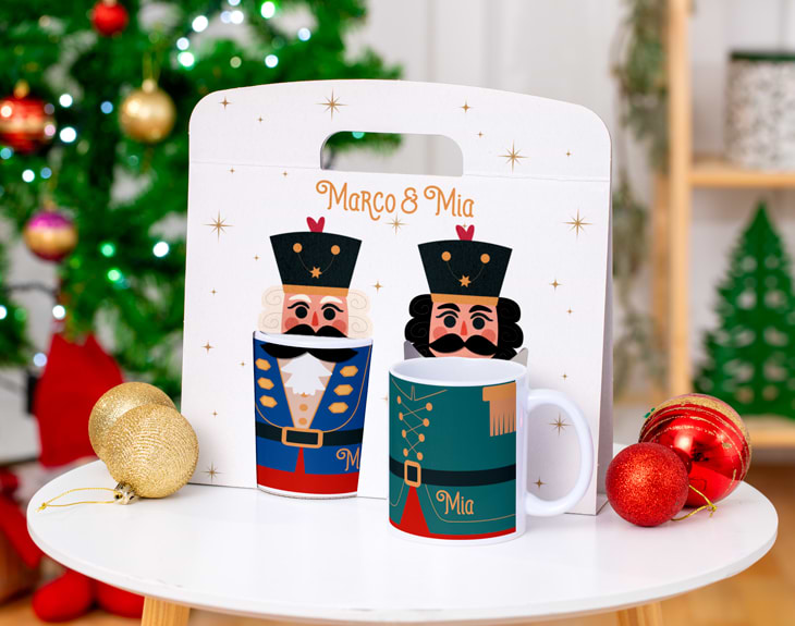 La mejor época del año ya está aquí... La Navidad ha llegado con su alegría e ilusión. Si quieres que el espíritu navideño esté presente hasta en tu cocina, tenemos algo que no te puede faltar en estas fechas. Se trata de nuestra taza navideña con estuche personalizada con diseño "Cascanueces". Lo más especial de esta taza es que es personalizable, podrás escribir el nombre que tú quieras. ¡Quedará genial! Además, cuenta con un estuche personalizado que tiene un estampado súper navideño. ¡Será el regalo perfecto para estas fechas! Esta taza es perfecta para disfrutar de un buen café mañanero. Personalizar esta taza con estuche es muy sencillo. El primer paso a seguir consiste en añadir el producto al carrito y entrar al área de personalización. Una vez ahí, ya puedes escribir el nombre que tú quieras. Pronto estará perfecta y lista para regalar. ¡Será un original regalo para Navidad! Medidas del estuche individual: 25,5 cm x 15 cm. Medidas del estuche doble: 26,5 cm x 25,5 cm.