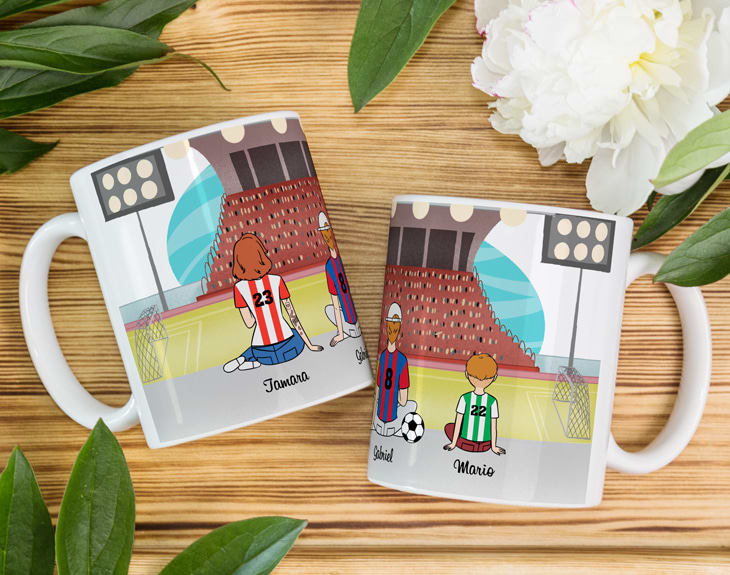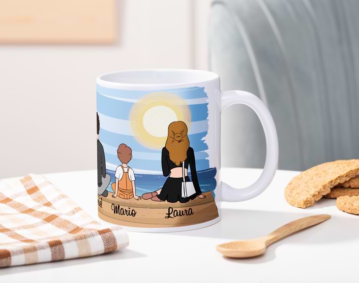 Piensa en un momento de felicidad absoluta, seguro que no lo has dudado ni un segundo, un atardecer en la playa con tus personas favoritas, ¡no hay mejor plan que ese!. Buen tiempo, desconexión absoluta y poder disfrutar de tu familia, ¡ojalá poder teletransportarnos a ese momento! Si sois muy fans de los atardeceres y vuestros favoritos son sin duda frente al mar, este diseño está hecho para vosotros. ¿Cómo personalizarlo?¡muy sencillo! Solamente tendréis que seleccionar los personajes que más se parezcan a vosotros y decirnos vuestros nombres. Además, también podréis añadir a vuestras mascotas e incluso accesorios que os representen como una pelota o un equipo de música. Si estabais buscando unas tazas realmente especiales a juego para toda la familia, este regalo original está hecho para vosotros. ¡A partir de ahora comenzaréis cada día con una gran sonrisa!¡Será como desayunar en plena costa! Al comprar este diseño podrás elegir el tipo de taza que quieres entre nuestras nueve opciones disponibles en el desplegable: cerámica, mágica, plástico, con el interior en color, con cuchara, con asa en forma de corazón, enamel, taza take away y forest. En el lado derecho encontrarás la guía de tazas con las características de cada una de ellas. ¡Escoge el estilo y la cantidad de tazas que quieras!