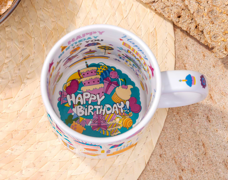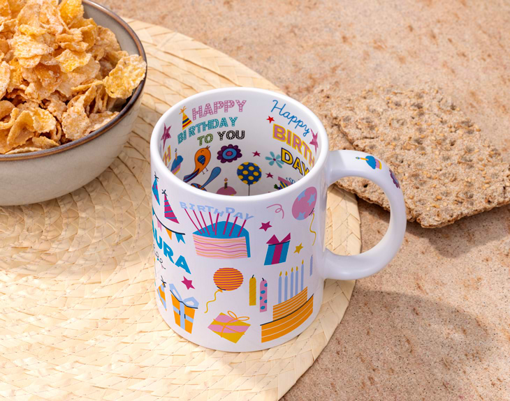 ¿Buscas un regalo de cumpleaños original y emotivo que dure más que una tarjeta o un trozo de pastel?. Esta taza personalizada lo tiene todo para emocionar y sacar una sonrisa en ese día tan especial y durará mucho más tiempo. Con un interior colorido repleto de diseños de "Happy Birthday", globos, tartas y cupcakes, es simplemente preciosa. Y lo mejor está por fuera: un exterior igual de alegre y festivo, pero con un toque único, porque podrás personalizarla con el nombre del cumpleañero o una frase corta que le quieras dedicar. Sin duda, será un detalle inolvidable. Esta taza de cumpleaños es perfecta para sorprender a tu pareja, mejor amigo/a, mamá, papá, hermanos o cualquier persona especial. Más que una taza, es una forma original de decir, "te celebro todos los días". Y seamos sinceros, ¿quién no ama una buena taza de café o té calentita? También es una opción ideal como regalo para niños, al ser tan colorida, les encantará. Imagina su carita de ilusión mientras beben su chocolatito caliente. Personalizarla es muy fácil: solo tienes que añadirla al carrito y, en el área de diseño, escribir el nombre o dedicatoria corta que desees. Y listo, tendrás el detalle de cumpleaños más divertido, original y lleno de color.