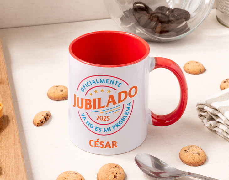 En la vida, los pequeños detalles son los que marcan la diferencia. Y un buen café calentito puede convertirse en el mejor compañero para empezar una nueva etapa. Por eso, esta taza personalizada es perfecta para recordar buenos momentos y disfrutar del merecido descanso tras tantos años de esfuerzo. ¿Se acerca la jubilación de alguien especial y aún no sabes qué regalarle? ¡Tenemos la solución ideal! Esta taza personalizada con un diseño elegante y emotivo es perfecta como regalo de jubilación. Un detalle único, pensado solo para él o ella, que sin duda le emocionará en cuanto lo vea. ¡Le va a encantar! Personalizarla es súper sencillo: solo tienes que elegir el modelo de taza que más te guste entre nuestras opciones. Desde las clásicas de cerámica hasta las mágicas, que revelan el diseño con el calor. Nuestra taza con interior de color, por ejemplo, queda preciosa combinada con los tonos del diseño. Y si quieres hacer el regalo aún más especial, puedes optar por la taza con asa en forma de corazón. Después, solo tienes que escribir el nombre que quieras, una fecha importante o el texto que más te inspire. ¡Tenemos opciones para sorprender a cada jubilado o jubilada como se merece!