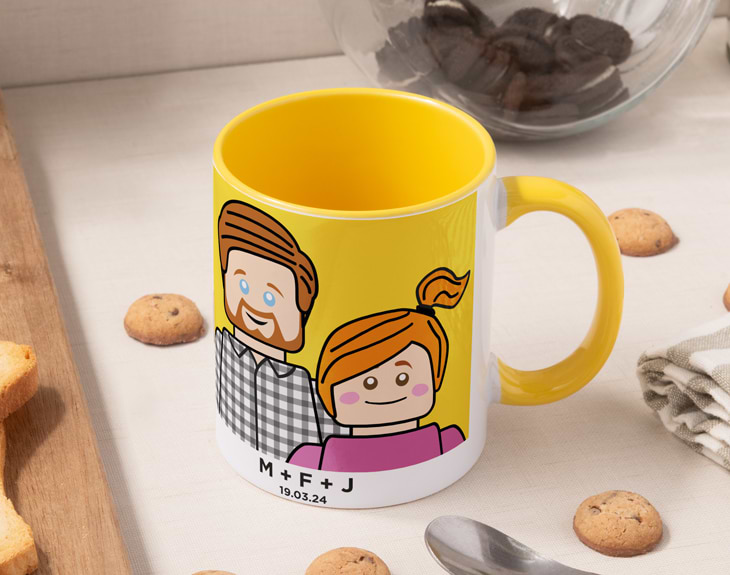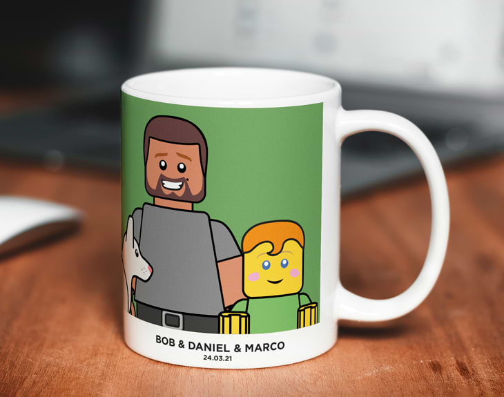 Seguro que muchos de los mejores recuerdos que tienes de tu infancia son los que tienes junto a tu padre. Si te sientes súper afortunado/a de tener al mejor padre del mundo, está claro que tienes que hacerle el mejor regalo del mundo. ¡Nuestra taza personalizada con diseño "Padre Lego" es el detalle perfecto! Es una preciosa forma de demostrarle lo mucho que lo quieres. Y es que si tu padre y tú habéis pasado tardes enteras jugando con las piezas de Lego... ¡Esta taza está diseñada para vosotros! Podrás representaros en forma de Lego, quedará súper divertido. Hay un montón de rasgos y accesorios disponibles para elegir. ¡Quedará genial! Se convertirá en un regalo súper original para el Día del Padre o para cualquier fecha especial. Personalizar esta taza es súper sencillo. El primer paso a seguir consiste en añadir el producto al carrito y entrar al área de personalización. Una vez ahí, ya puedes crear a estos avatares Lego desde cero, ¡ya verás que divertido! Pronto estará perfecta y lista para regalar. ¡Será un original regalo para padres! Al comprar este diseño podrás elegir el tipo de taza que quieres entre nuestras seis opciones disponibles en el desplegable: cerámica, mágica, plástico, con el interior en color, con cuchara o con asa en forma de corazón. En el lado derecho encontrarás la guía de tazas con las características de cada una de ellas. ¡Escoge el estilo y la cantidad de tazas que quieras!