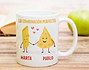Piensa en la mejor combinación que existe en el mundo. ¿Lo primero que se te ha venido a la cabeza son los macarrones con queso? Mmmmm se nos hace la boca agua solo de pensarlo. Si tu pareja y tú hacéis tan buen equipo como estos dos alimentos, esta taza personalizada es perfecta para regalar a tu otra mitad. Y es que, os compagináis tan a la perfección que parece que estáis hechos el uno para el otro y el destino ha hecho de las suyas para conseguir juntaros. Si nunca antes habías sentido esa conexión con alguien, este diseño tiene vuestros nombres. Solo tienes que decirnos vuestros nombres y los insertaremos debajo de estos divertidos dibujos. No sé a ti, pero a nosotros nos está apeteciendo un buen plato de pasta en pareja.