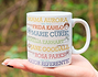 • Taza de cerámica con tu diseño en cajita individual (33 cl). • Tarjeta recordatoria.
