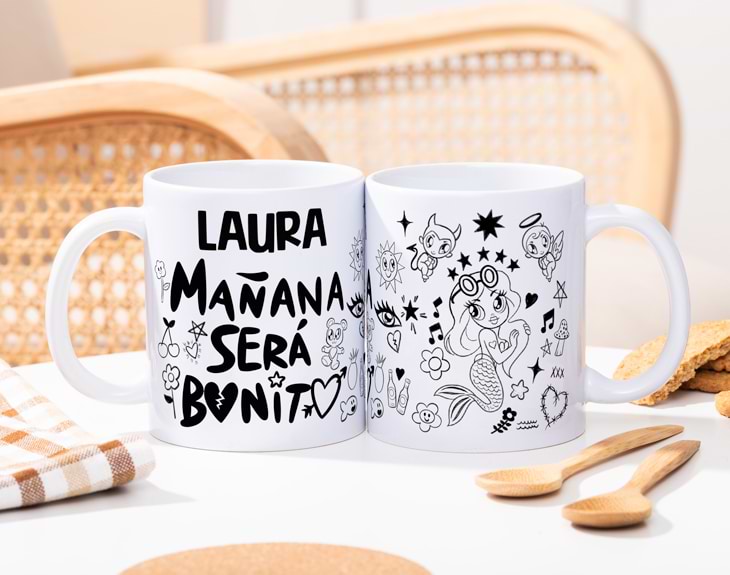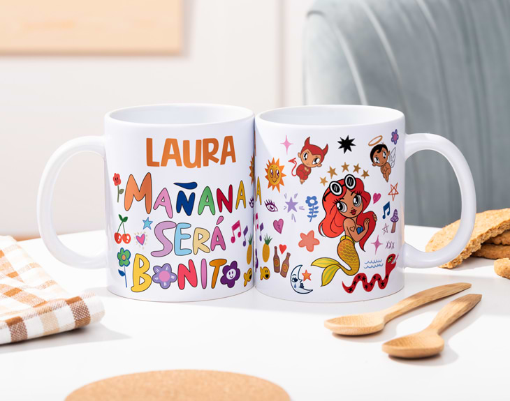 ¡Mañana será bonito como lema de vida! Y es que si algo nos ha enseñado la más bichota del mundo, Karol G, es que hay que vivir al máximo la vida sin importar el qué dirán. Por eso, tenemos la taza personalizada perfecta para empezar el día con toda la energía del mundo. Que chimba de vida es tomarte tu café o té bien calentito en esta taza tan mona. Sin duda este álbum ha marcado un antes y un después en la carrera de Karol G, por eso esta original taza es el regalo perfecto para cualquier fan de la bichota. ¡Le dejarás sin palabras! Además, podrás elegir qué tipo de taza te gusta más y combinarla con este precioso diseño, desde nuestra taza blanca hasta la que tiene el interior que color. ¡Hay para todos los gustos! Pero espera porque todavía queda la mejor parte. No te olvides que puedes personalizar esta taza a tu gusto. Lo único que tienes que hacer es completar este diseño tan guay con el nombre que quieras y colocarlo para que quede perfecto. La bichota season ha llegado y a nosotros nos encanta tanto como esta taza. ¡Es el regalo perfecto! Al comprar este diseño podrás elegir el tipo de taza que quieres entre nuestras seis opciones disponibles en el desplegable: cerámica, mágica, plástico, con el interior en color, con cuchara o con asa en forma de corazón. En el lado derecho encontrarás la guía de tazas con las características de cada una de ellas. ¡Escoge el estilo y la cantidad de tazas que quieras!