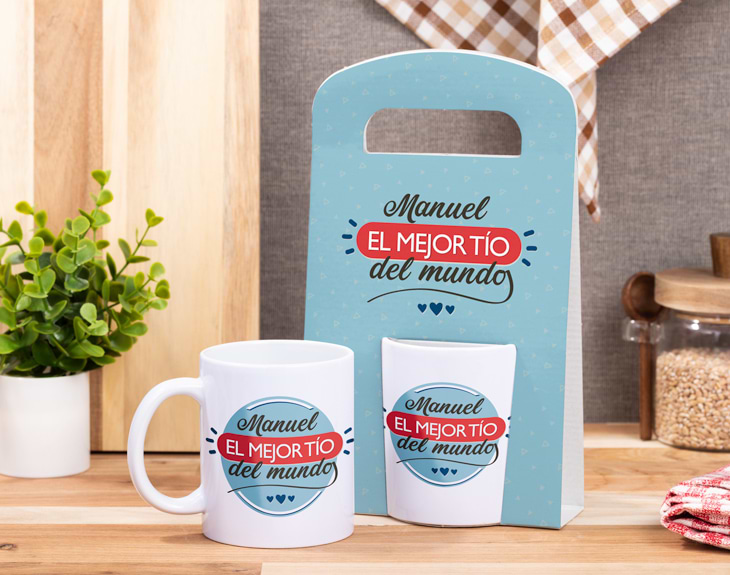 Una taza original con la frase que nunca te atreves a decirle a tu tío: "eres el mejor". Si estás buscando sorprenderle por algún motivo, esta puede ser tu oportunidad de oro. Personaliza la taza con su nombre, y verás qué sonrisa le sacas en cuanto vea el regalo. Si eres de los que quieren a su tío como si fuera un padre, este es un detalle que le puede hacer muchísima ilusión. Puede utilizar esta taza, tanto para desayunar como para la hora de la merienda. O incluso, se la puede llevar al trabajo y fardar delante de sus compañeros de su sobrino.