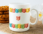 ¿Por qué no personalizar una taza con un mensaje escrito en cubos? Perfecto para los primeros desayunos de tu hijo o para sorprender a esa persona que siempre será un poco Peter Pan. Al adquirir el producto (y antes de pagar) se te preguntará el texto para la taza.