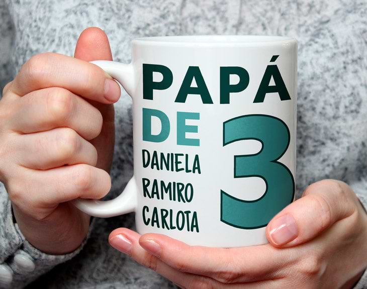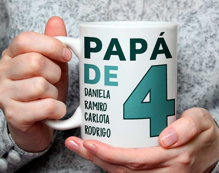 ¿Estáis pensando en hacer un regalo a vuestro padre de parte de todos sus hijos? Y es que si gracias a su amor incondicional, su paciencia y su esfuerzo diario por lograr vuestra felicidad, ha conseguido que seas una familia súper unida, se merece un regalo así de original. Solamente tenéis que decirnos el número de hermanos que sois y vuestros nombres. De esta froma vuestro papá podrá desayunar cada mañana con una taza personalizada así de especial. Y es que, no se nos ocurre una mejor manera de comenzar el día que compartiendo un café con sus personas favoritas. Si para él sus hijos están por encima de todo, le encantará tener un detalle así con el nombre de todos sus niños/as. ¡Es imposible que al verlo no se sienta el padre más afortunado y querido del mundo!¡Seguro que se le escapa alguna lagrimita de emoción!