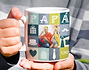• Taza de cerámica con tu diseño en cajita individual (33 cl). • Tarjeta recordatoria.