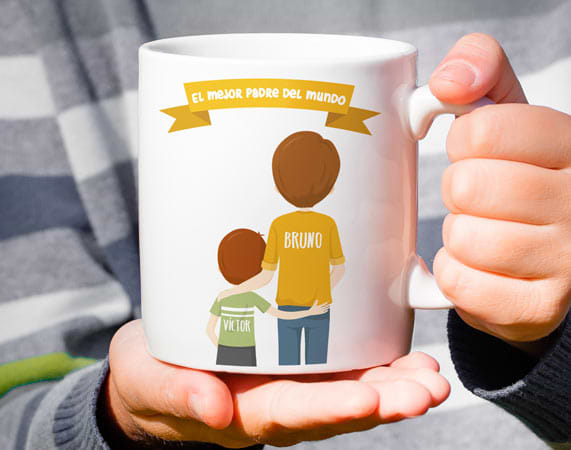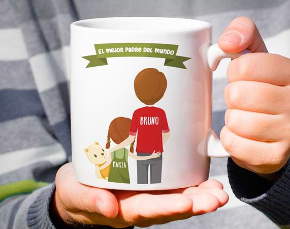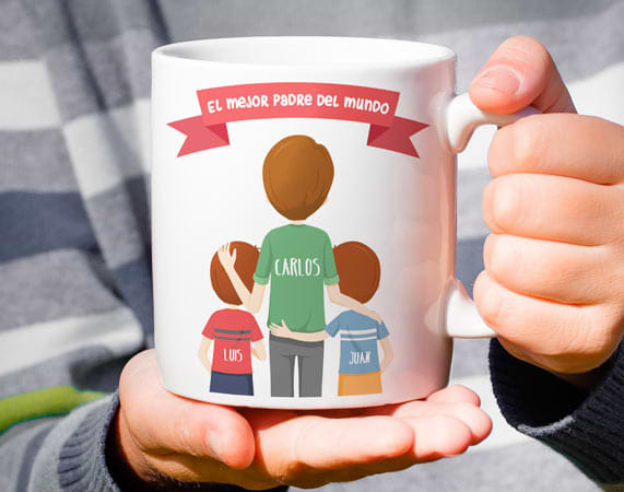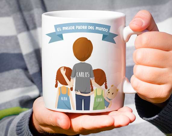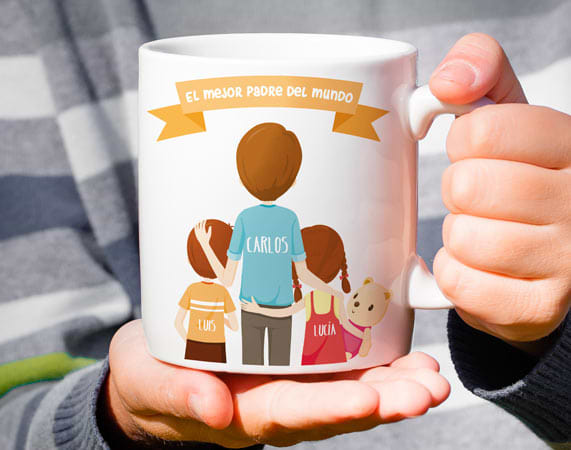 Si tu familia está súper unida y sois la envidia de todos los amigos y vecinos, esta taza personalizada es perfecta para darle una sorpresa a papá en el Día del Padre. Dinos cuántos hermanos sois y los nombres de cada uno para que podamos personalizar la taza y hacerla única para tu padre. El diseño es muy auténtico, apareceréis todos abrazados para darle una sorpresa enorme a tu papá.