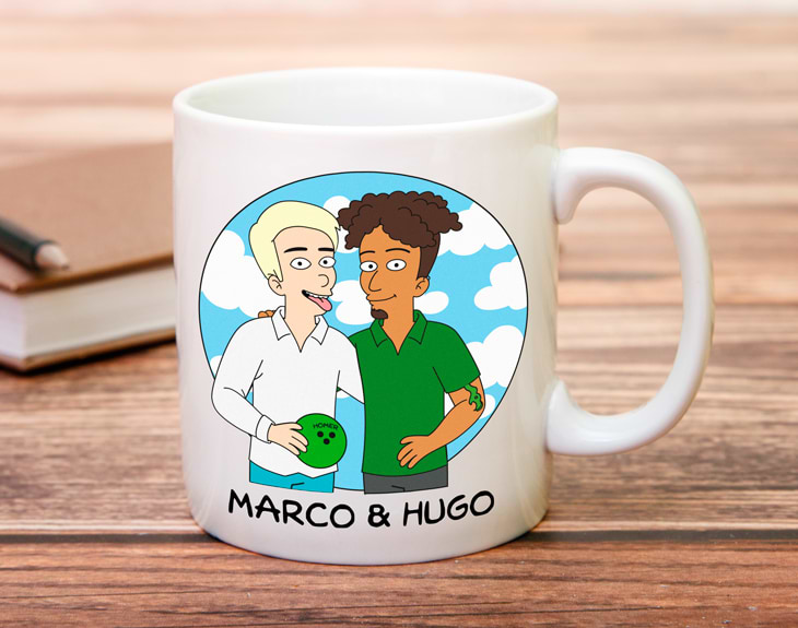 Imagina hacer sonreír a la persona que amas desde primera hora de la mañana, gracias a esta taza personalizada Cartoon será posible. Sin duda, le hará muchísima ilusión y amenizará sus madrugones. Es ideal para sorprender a tu otra mitad en su cumpleaños, San Valentín o en cualquier otra fecha especial. Se enamorará una y otra vez a cada sorbo que dé. Lo más especial de este producto es que es personalizable. Tú eres quien creas a estos personajes de dibujos animados. Tienes un montón de opciones para elegir en nuestro diseñador, seguro que consigues que os representen a la perfección. Es un regalo súper original para parejas, ya que no habrá otro igual. ¡Seréis la envidia de todos los enamorados! Y Todos los invitados también querrán tener su propia taza personalizada. Personalizar este producto es muy sencillo. El primer paso a seguir es añadir la taza al carrito y entrar al área de personalización. Una vez ahí, tendrás que crear de cero a tus personajes, ¡ya verás que divertido! Después de diseñarlos, solo queda terminar la compra y todo lo demás quedará en nuestras manos. ¡no esperes más y crea a la pareja del año! Al comprar este diseño podrás elegir el tipo de taza que quieres entre nuestras siete opciones disponibles en el desplegable: cerámica, mágica, plástico, con el interior en color, con cuchara, con asa en forma de corazón o enamel. En el lado derecho encontrarás la guía de tazas con las características de cada una de ellas. ¡Escoge el estilo y la cantidad de tazas que quieras!