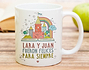 • Taza personalizada (33 cl). • Tarjeta recordatoria.