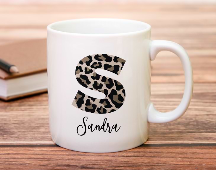¿Y tú qué eres más de café, té o un buen chocolate caliente? ¿Qué te parece si nosotros ponemos la taza y tú eliges lo que quieres beber? Aquí tenemos nuestra taza personalizada con el nombre y la inicial con estampado Animal Print. Es ideal para acompañarte en todos tus desayunos o en las tardes de relax en las que solo apetece quedarse en casa y beber algo calentito. O incluso si conoces a esa persona loca por el animal print, esta taza es algo que no puede faltar en su cocina. A cada sorbo que dé se acordará de ti. Sin duda, es un regalo muy original que cautivará los corazones más salvajes. ¿Cómo personalizar esta taza tan chula? Lo primero, tienes que elegir el color de la taza y cómo quieres que sea el asa. Después añades el producto al carrito y entras al área de personalización. Ahí, escoges la inicial con el estampado que más te guste y escribes el nombre. Nosotros no encargamos de lo demás. ¡Todos querrán una taza tan chula como ésta!