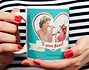 Esta taza tiene una magia especial oculta en el amor entre una madre y sus hijos. Elige una foto para ponerla en el corazón tan tierno que hemos diseñado y escribe un texto precioso en la cinta. Al final, crearás una taza magnífica para sorprender a tu mamá en el Día de la Madre, o en su cumpleaños. Es un regalo original que no puedes perderte. ¿Siempre le regalas rosas y flores? Ahora puedes cambiar un poco de regalo y hacerlo único.